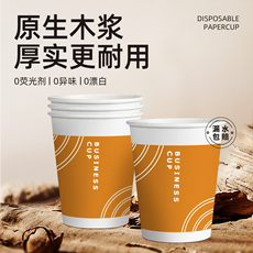 欣悦福橘色商务一次性纸杯加厚加硬家用商用口杯茶水杯办公室杯子