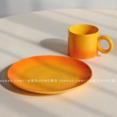 ins小众橘色渐变落日马克杯陶瓷餐盘简约创意水杯咖啡杯早餐盘