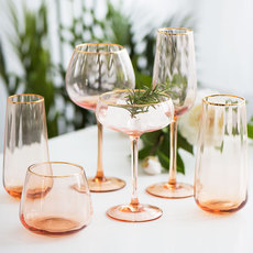 日落杯水晶玻璃水杯复古橘色中古彩色粉色鸡尾酒杯高脚杯香槟酒杯