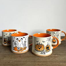 创意内桔色南瓜手绘釉下彩牛奶杯早餐复古可爱情侣杯喝水杯大容量