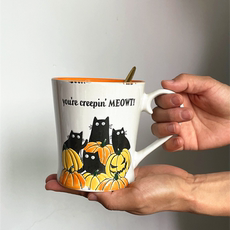 创意内桔色黑猫手绘釉下彩牛奶杯早餐复古陶瓷咖啡杯喝水杯大容量