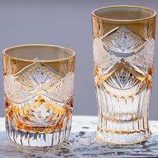 新款日式江户切子橘色洋酒杯手工雕刻水晶玻璃杯威士忌杯冷水杯