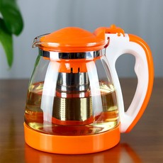 桔色家用大容量食品级耐热加厚玻璃泡茶壶过滤网水壶水杯茶具套装