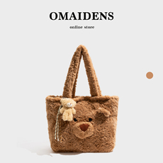 橙子少女毛毛包卡通熊托特包毛绒玩偶包包女士2025新款手提单肩包