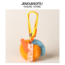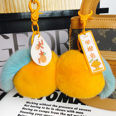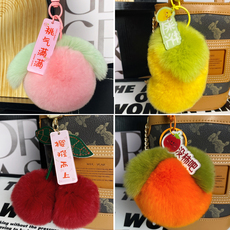 超密真獭兔皮毛一体橙子毛绒挂件水果钥匙扣挂绳心想事成包包挂饰