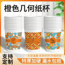 一次性杯子整箱批发橙色几何纸杯特厚加硬超高品质防烫不漏可定制
