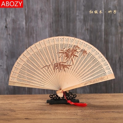 镂空中国风女士古风折扇手工檀木扇檀香木扇缅香扇子送老外易开合