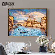 自油自画 数字油画diy 大幅客厅玄关卧室手绘风景欧式装饰画 水都