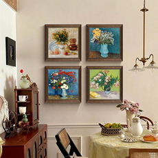 梵高餐厅装饰画美式复古客厅挂画花卉入户玄关壁画欧式餐桌仿油画