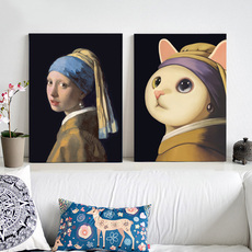 法欧式ins风复古油画装饰画桌面摆件猫咪卧室客厅玄关背景墙挂画