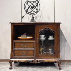 美式乡村全实木酒柜电视柜边柜轻奢欧式客厅储物收纳玻璃装饰窄柜