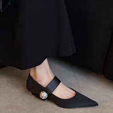 真皮气质尖头小坡跟一字带黑色玛丽珍鞋通勤百搭2026年法式单鞋女