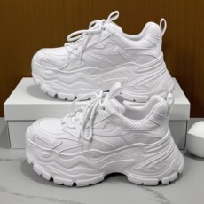 欧洲站2026年春季新款真皮松糕厚底小白鞋欧货白色增高老爹鞋女潮