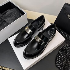 细节控~真皮金属锁扣圆头粗跟懒人乐福鞋英伦风小皮鞋黑色单鞋女