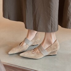 头层水洗牛皮 欧洲站女鞋单鞋2026春坡跟内增高一脚蹬方头小皮鞋