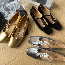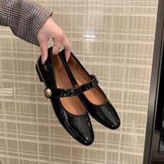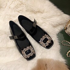2026新款法式方头水钻扣玛丽珍单鞋女甜美黑色漆皮小皮鞋