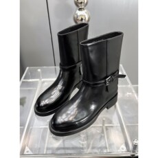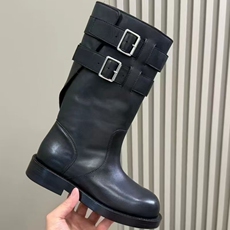 欧洲站2025秋新款真皮皮带扣机车靴西部短靴女英伦风中筒马丁靴子
