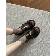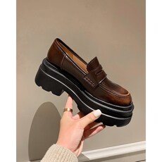 斯顿学院2026春季新款厚底金币乐福鞋女粗跟英伦小皮鞋擦色单鞋