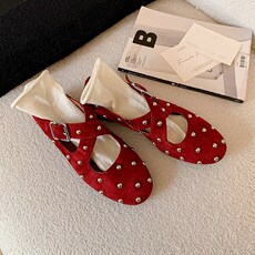 元气gl2026春季新款欧货铆钉浅口玛丽珍鞋女平底交叉带芭蕾单鞋