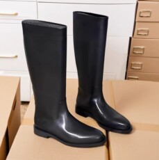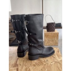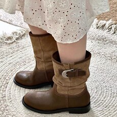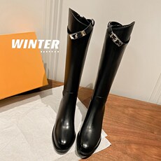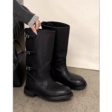 2025秋冬新款真皮搭扣粗跟英伦风骑士长筒靴女不过膝靴马丁靴女款