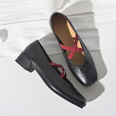 头层牛皮2026春复古交叉带玛丽珍鞋女猪鼻芭蕾鞋方头低跟真皮单鞋