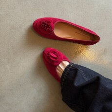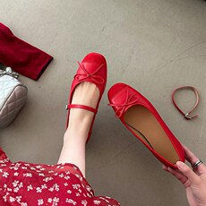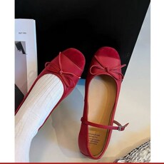 真皮法式交叉带芭蕾舞平底鞋红色绒面蝴蝶结玛丽珍鞋羊皮银色单鞋