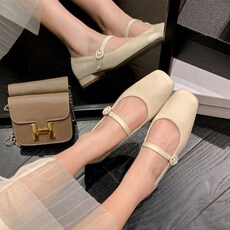 中跟单鞋2026春秋新款粗跟方头一字带扣百搭鞋子女真皮玛丽珍鞋
