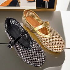 ido玛丽珍鞋镂空水钻女2025夏新款欧货女鞋芭蕾舞一字扣平底单鞋