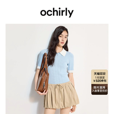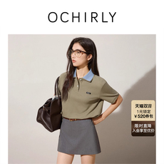 OCHIRLY欧时力冰爽丝氧气衫短袖针织衫女polo衫撞色2025夏季新品