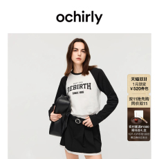 OCHIRLY欧时力 字母印花插肩长袖T恤女上衣撞色休闲2025秋冬新品*