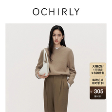 OCHIRLY欧时力澳大利亚100%羊毛毛衣女上衣V领保暖高级秋冬新