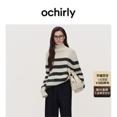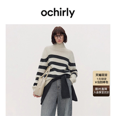 【可机洗100%羊绒衫】OCHIRLY欧时力 条纹高领毛衣针织高级秋冬