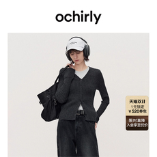 OCHIRLY欧时力 V领扭结针织毛衣女上衣设计感修身2025秋冬新品*