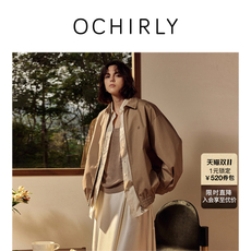 OCHIRLY欧时力 饰牌宽松风衣夹克外套女气质卡其色流行秋冬尖货