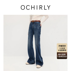 OCHIRLY欧时力 微喇牛仔长裤女显瘦微弹复古蓝色高街2025夏季新品