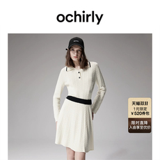 OCHIRLY欧时力 水溶棉V领针织连衣裙收腰A字软糯肌理感秋冬尖货
