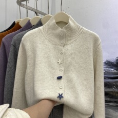 休闲慵懒风减龄宽松海星扣立领针织开衫女宽松显瘦洋气毛衣外套潮
