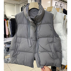 欧洲站冬季小立领拉链白鸭绒羽绒马甲女宽松厚款抽绳洋气厚款马夹