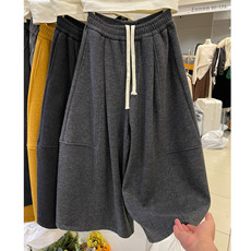 3R3正品66365-8冬季新款加绒加厚弯刀阔腿裤女宽松休闲显瘦卫裤潮