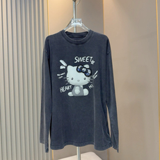 欧货2026早春新款时尚减龄烫钻Kitty猫咪做旧短袖T恤女宽松上衣