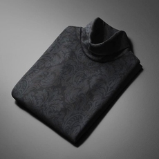 欧洲站潮牌轻奢暗纹印花高领打底衫男士秋冬季保暖长袖t恤上衣服