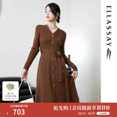 ELLASSAY歌力思秋季新款通勤修身单排扣气质连衣裙女EWD353Y00200