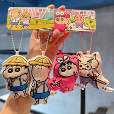 情侣一对可爱毛绒正品蜡笔小新小白卡通毛绒钥匙扣男女书包小挂件