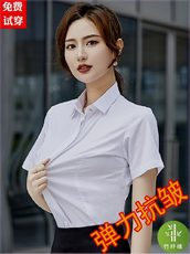 职业装夏款女士衬衫白色纯棉短袖时尚修身上班面试休闲职场正装