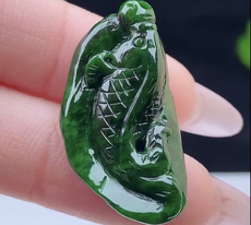 沾=衣8235天然A货缅甸老坑正阳绿翡翠鱼化龙牌子大吊坠带证书复检