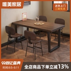复古歺桌b饭店铁艺实木长凳长条桌椅组合面馆素食馆餐厅餐桌子商