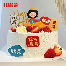母亲节蛋糕插牌套装 妈妈生日祝福烘焙装饰插件 健康快乐福气满满
