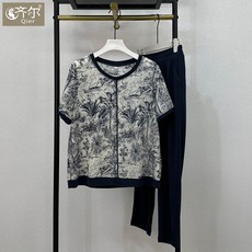 达芬奇密码高级冰丝睡衣春夏新款大码家居服套装母亲节礼物送妈妈