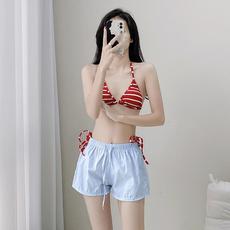 在逃公主泳衣女度假辣妹分体比基尼三件套小胸聚拢温泉小众游泳装