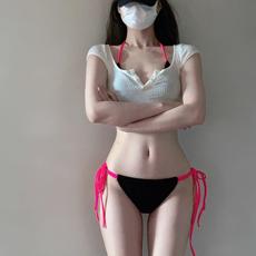 泳衣女2025新款高级感分体纯欲小胸聚拢性感绑带三件套比基尼泰国